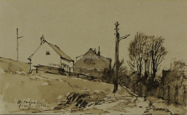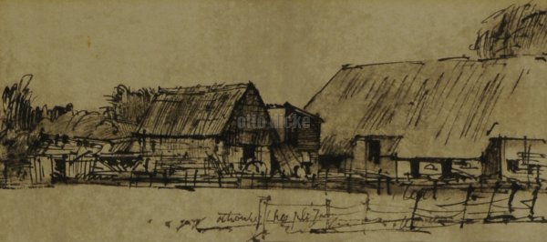 Drenthe, Orvelte 39x27 cm pen gewassen inkt 19-07-1962 gesigneerd n.t.k. | Drenthe, es Uffelte 26x13 cm pen gewassen inkt 03-08-1970 gesigneerd € 1000 | Alblasserwaard 29x14 cm pen 21-10-1962 gesigneerd n.t.k. | Alblasserdam 23x15 cm pen gewassen inkt augustus 1984 gesigneerd n.t.k. | Riviergezicht Lek 26x16 cm pen gewassen inkt 1983 gesigneerd € 1200 |